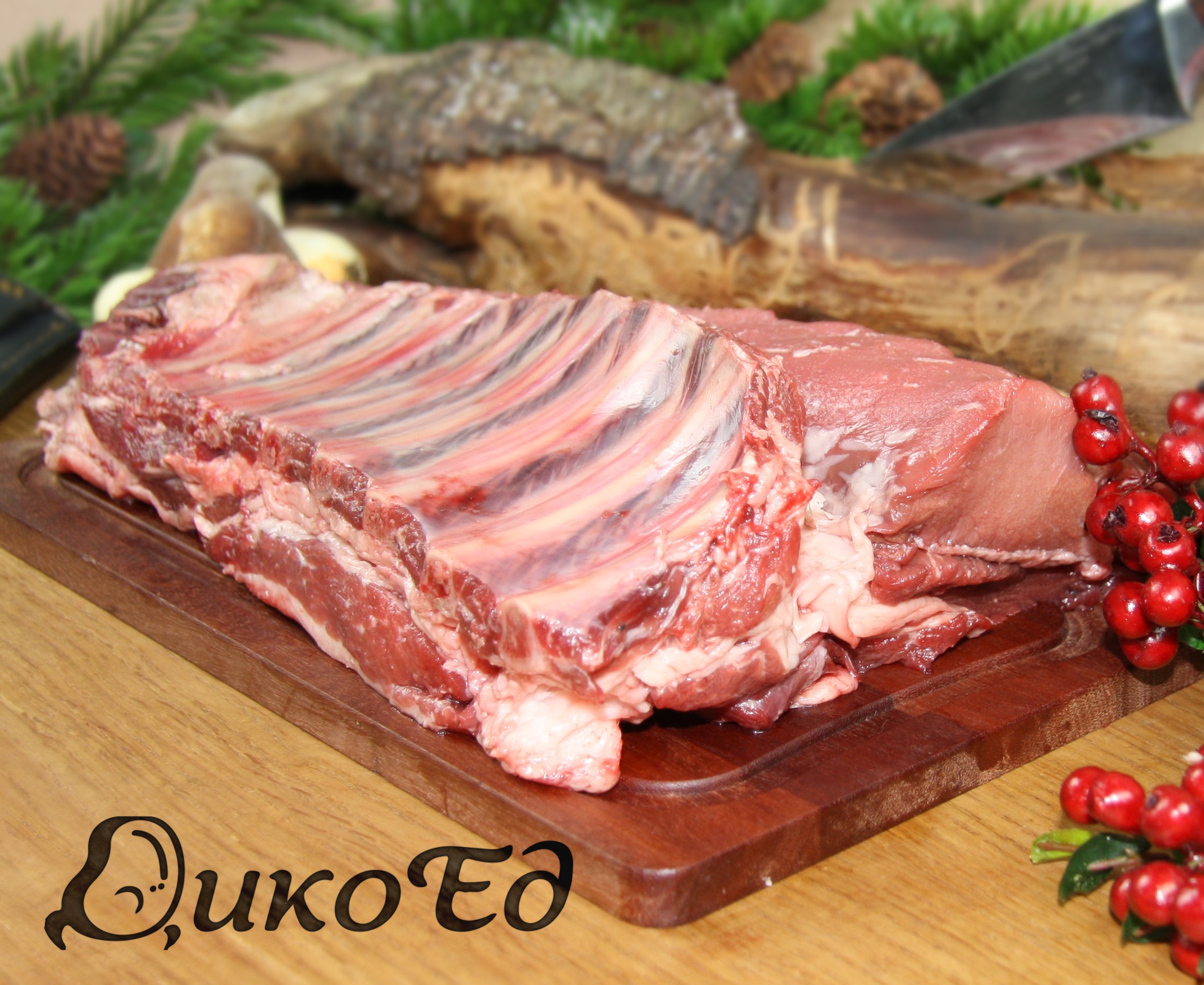 Корейка дикого кабана на кости